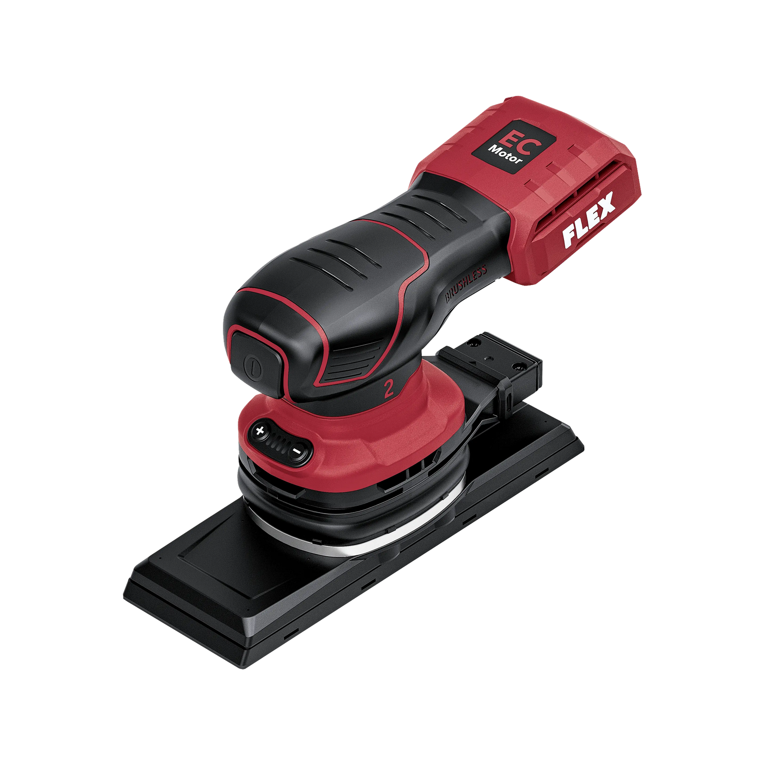 The brushless motor of the OSE 2-70x198 18-EC is particularly important in a cordless device because it minimizes battery consumption: a brushless motor is more efficient than a brushed drive and converts more of the stored battery energy into sanding power instead of losing it as heat due to friction. In practice, this means longer runtime per battery charge, less heat generation on the device and battery, and higher constant power even with decreasing battery level. The power drop of a brushless motor is significantly lower with a declining battery level than with conventional drives.