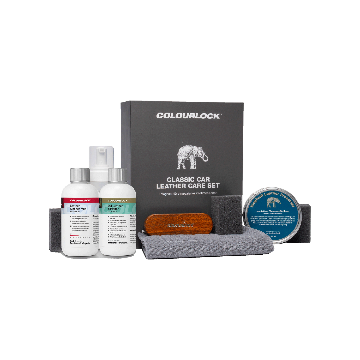 Koch-Chemie × COLOURLOCK COLOURLOCK "Classic Car Leather Care" Set (Pflegeset für strapaziertes Oldtimer-Leder) - 9-teiliges Set (625 ml) ist bereits nachbestellt. Sobald alle Produkte deiner Bestellung wieder verfügbar sind, versenden wir die Ware in einer gemeinsamen Sendung. Die Lieferzeit bestimmt sich nach dem Artikel in deiner Bestellung, der die längste Lieferzeit hat.