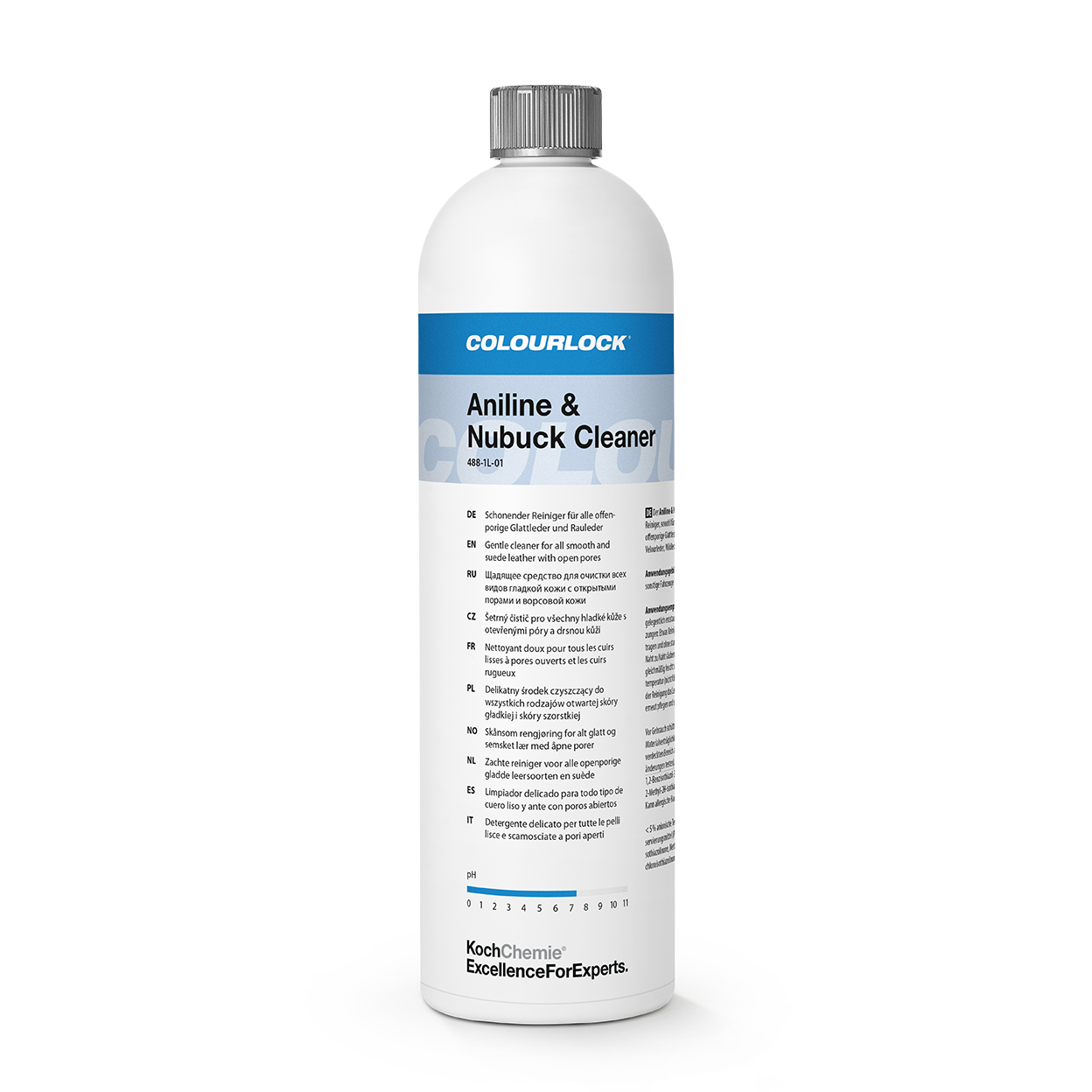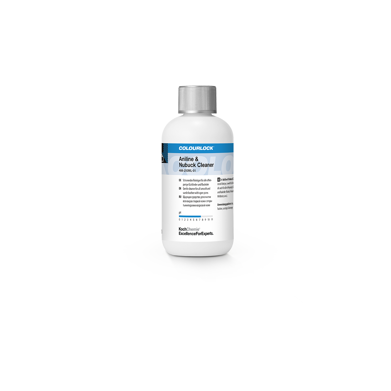 Koch-Chemie × COLOURLOCK "Aniline & Nubuck Cleaner" ist ein speziell entwickelter Reiniger für empfindliche, offenporige Leder wie Anilin und Nubuk. Er entfernt schonend Schmutz, Griffspuren, Körperfette und leichte Flecken, ohne die sensible, saugfähige Struktur anzugreifen. Die mild formulierten Tenside lösen Verschmutzungen kontrolliert, verhindern Ausbleichen und schützen die empfindliche Oberfläche vor Überfeuchtung oder Aufrauen. Der Reiniger wird sparsam auf ein Tuch oder Schwämmchen gegeben und in sanften Bewegungen eingearbeitet – ideal für Möbel, Taschen, Modeartikel und hochwertige Innenraumleder. Dank seiner faserfreundlichen Formel bleiben Struktur, Haptik und die natürliche, matte Farbwirkung vollständig erhalten.Perfekt geeignet für alle, die offenporige Leder sicher, materialschonend und ohne Risiko von Wasser- oder Randflecken reinigen möchten. Für zusätzlichen Schutz empfiehlt sich anschließend die passende Aniline Cream oder eine geeignete Imprägnierung.