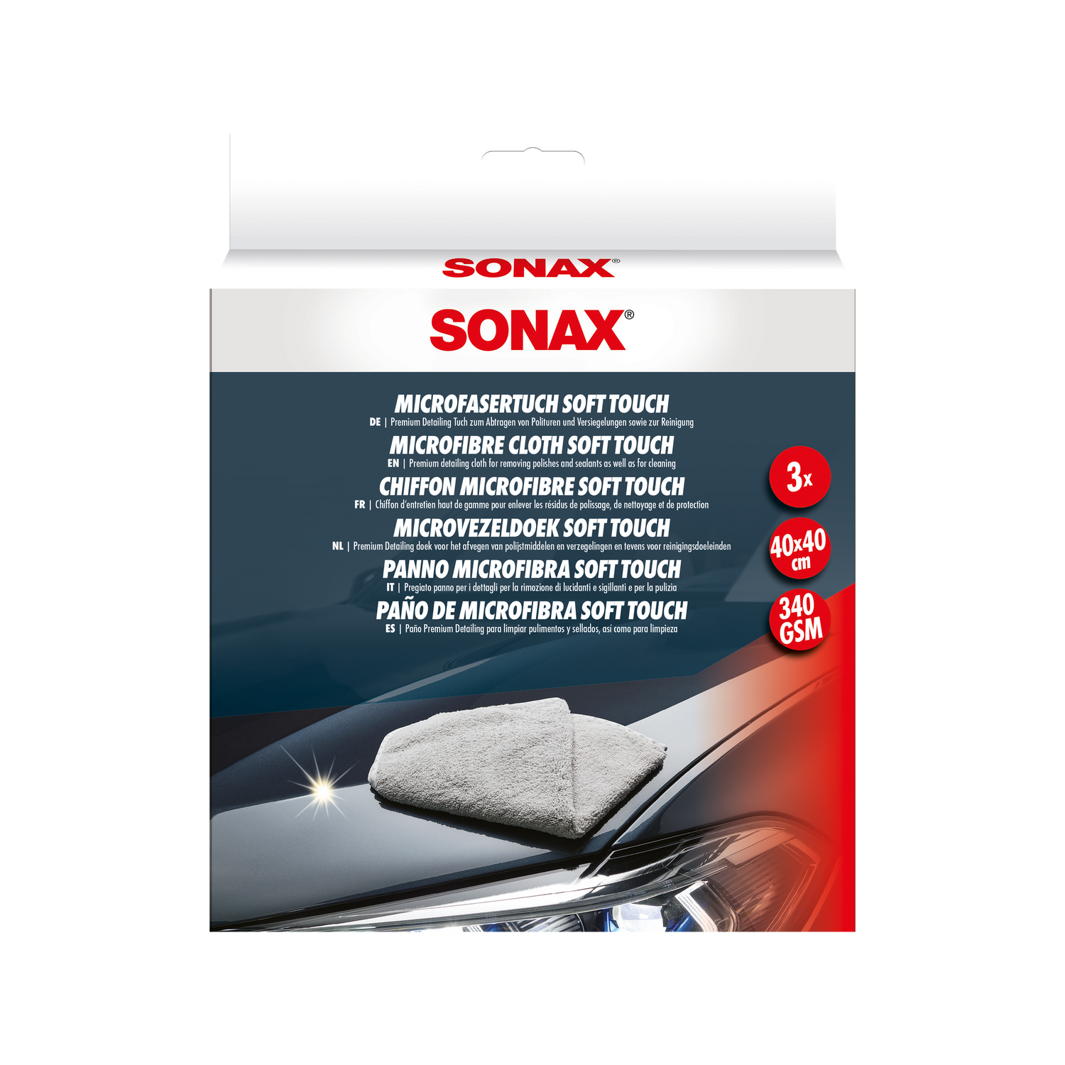Politurrückstände abnehmen, Versiegelungen verteilen, Oberflächen pflegen — mit dem SONAX PROFILINE MicrofaserTuch "Soft Touch"